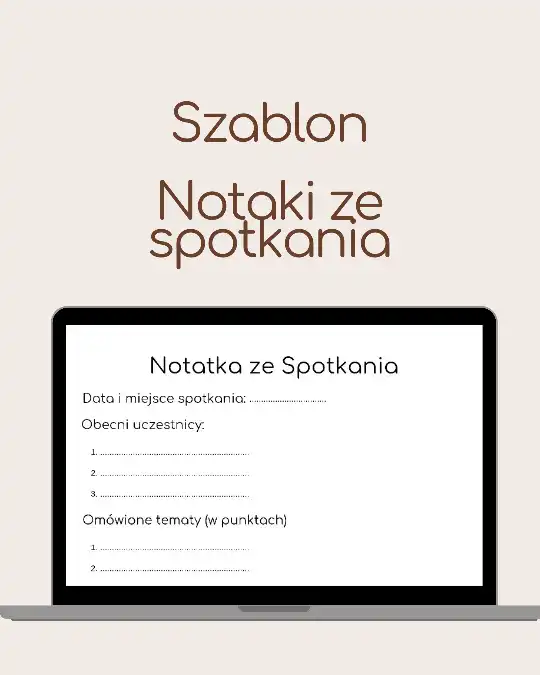Szablon działa jako checklista najlepszych praktyk. Wypełniając nagłówki, uczysz się, że najważniejsze jest odnotowanie decyzji i następnych kroków/terminów, a nie tylko luźnej dyskusji. To jest wartość edukacyjna.